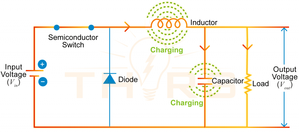 - Releases stored energy to the load when the semiconductor switch is OFF